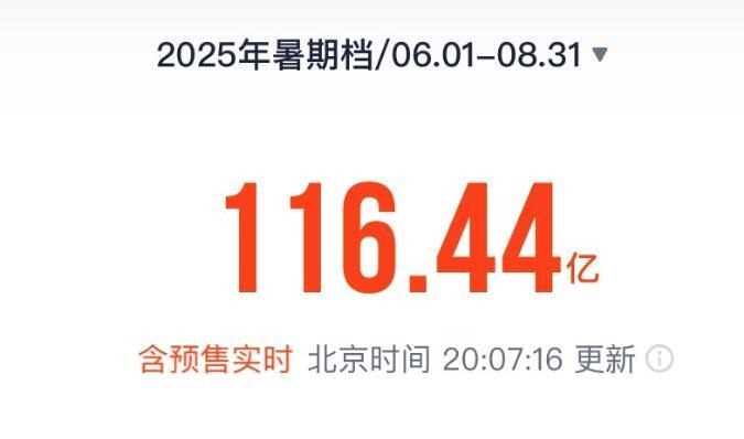从今天的20:07(8月29日)开始,2025年夏季电影的票房总收入达到1,1644亿,超过了2024年夏季电影的票房总收入。