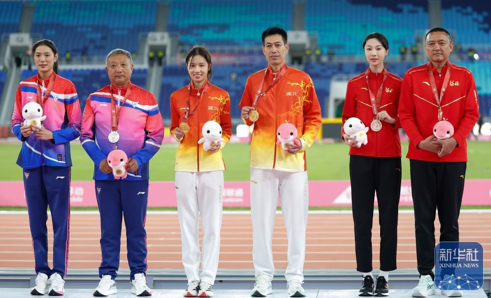 11月19日,第十五届全国田径锦标赛女子跳高决赛在广州举行。 ^ 获奖湖北队肖雨琪(左三)、亚军上海队卢嘉文(左)、季军河北队胡林鹏(右二)在颁奖典礼上与教练合影留念。新华社记者黄伟供图↑第三名河北省队队员胡林鹏在颁奖典礼上确认奖牌。新华社记者黄伟摄↑颁奖典礼上获奖的湖北队邵雨绮。新华社记者黄伟摄↑颁奖典礼上获奖的湖北队邵雨绮。新华社记者 黄伟 供图 ↑亚军上海队卢嘉文出席资格预审仪式。图:新华社记者 黄伟 ↑ 上海队队员卢嘉文赛后庆祝。他获得第二名。照片o:新华社记者邓华↑上海队球员卢嘉文赛后。他获得第二名。新华社邓华通讯社供图↑新疆队球员迪娜·努尔兰在比赛中。她获得了第四名。新华社记者 邓华 供图。