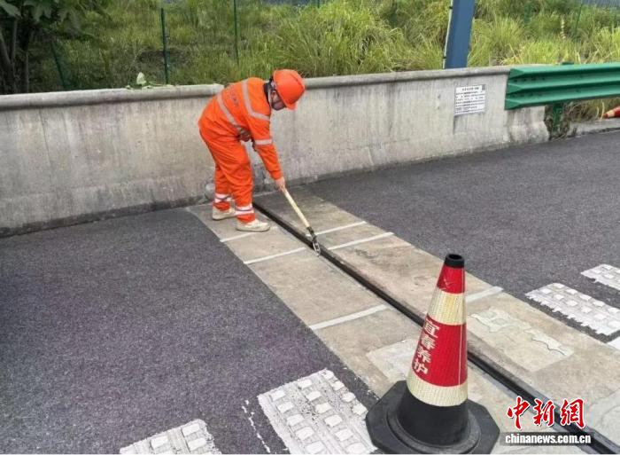 这张照片显示了一个维护人员,该维护人员使用了“公路桥的扩展关节清洁刷”。Yu Zhiyang照片