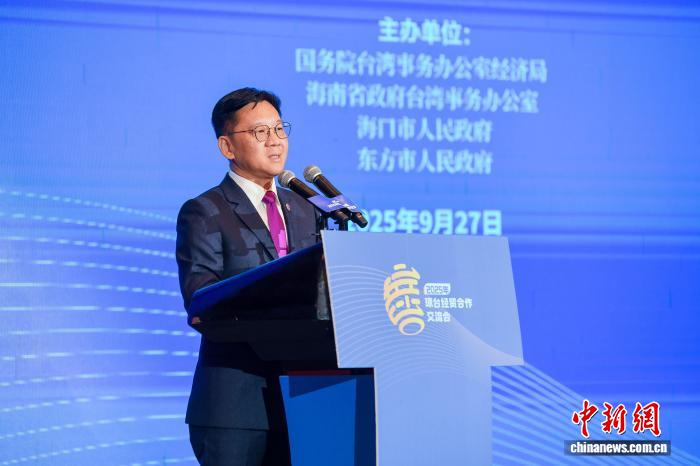 9月27日,2025年Qiongtai经济与商业合作交流会议在北孔举行。这张照片显示,台湾兄弟会全国投资公司协会主席李Zhenghong在交流会议的开幕式上发表了演讲。中国新闻服务记者Luo Yun Fei的照片
